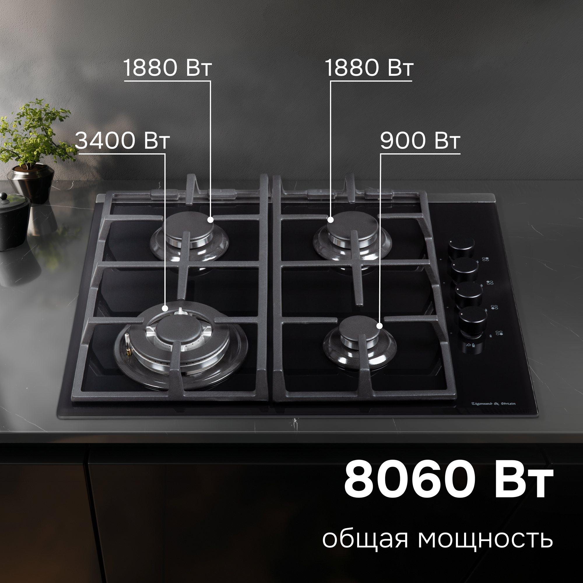 | Мощность горелок, Вт | 900; 1880; 1880; 3400 |