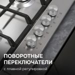 Варочная плита оснащена всем необходимым для безопасного использования. Система газ-контроль отключает подачу газа, если пламя гаснет, что значительно снижает опасность возгорания. Нержавеющая сталь отличается простотой и легкостью в уборке – достаточно протирать влажной тряпкой поверхность для поддержания чистоты. Современный дизайн и ширина газовой поверхности органично впишется в любой интерьер кухни.