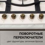 · электрический поджиг в каждой ручке позаботится о безопасном и быстром включении конфорок без использования спичек;