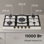 WOK-горелка с тройным кольцом пламени быстрее и равномернее распределит нагрев по всему дну посуды. Это особенно актуально, при готовке в широкой посуде, например, на блинной сковородке или кастрюле на 6 литров. Имея 5 конфорок, вы имеете возможность готовить несколько блюд одновременно, ширины панели будет достаточно для свободного расположения.