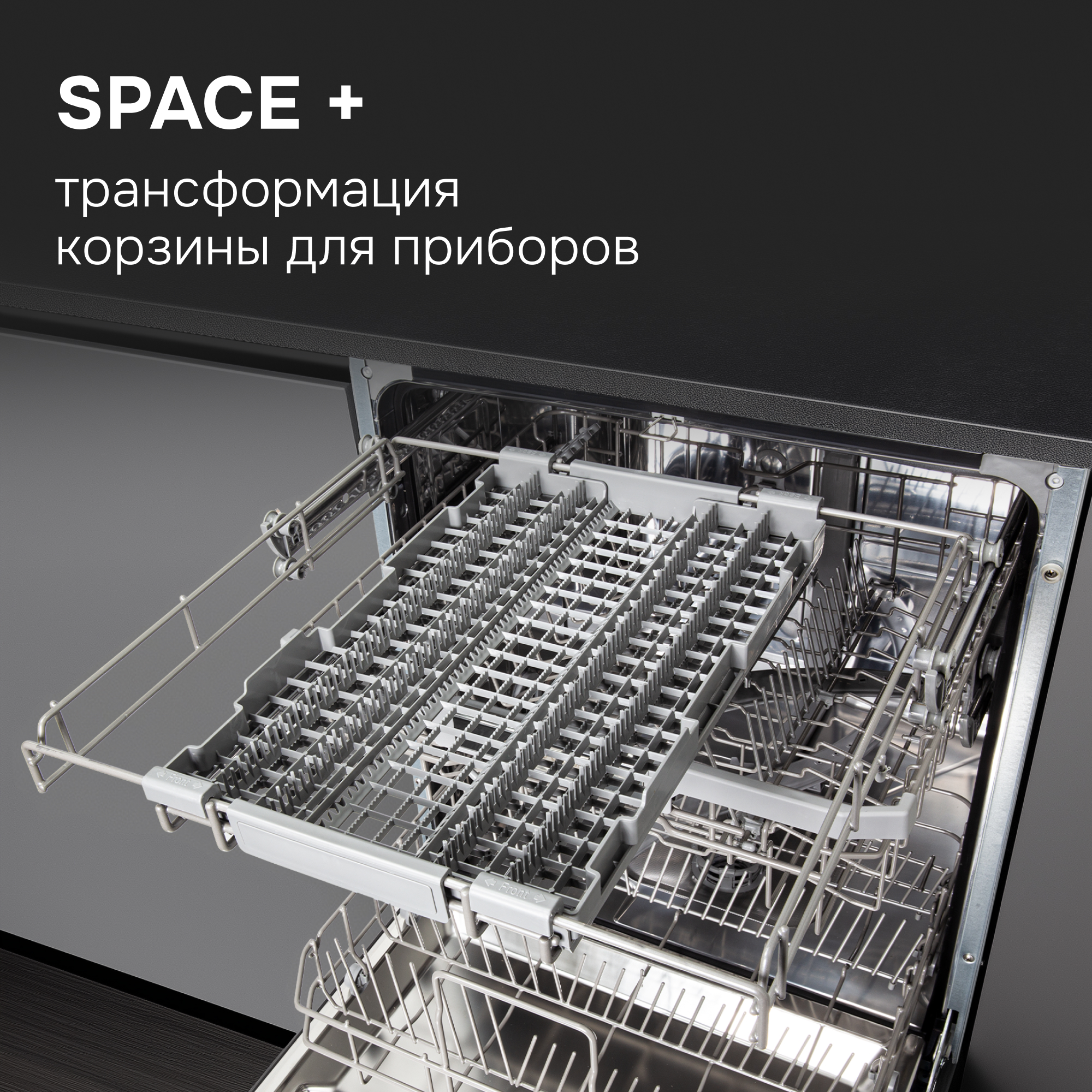 Отдельная корзина для столовых приборов дает возможность легче, быстрее и оптимальное разложить предметы для качественной обработки и удобной загрузке.