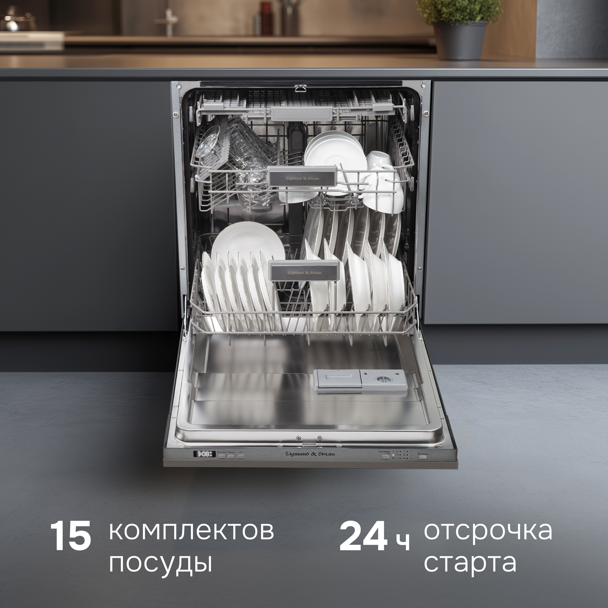 Посудомоечная машина Zigmund & Shtain DW 301.6 сочетает в себе компактность, многофункциональность, экономию и качество. ПММ легко отмоет 15 комплектов посуды, тщательно ополаскивает поверхность столовых приборов, не оставляя следов моющих средств. Несмотря на многофункциональность, имеет простую панель управления с интуитивно понятным интерфейсов. Встраиваемая техника гармонично вписывается в современный интерьер кухни и экономит не только воду и ваше время, но и место даже на небольшой по площади кухни.