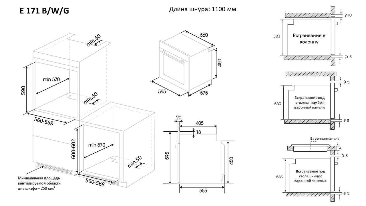 Ниша для встраивания (ШхГхВ), мм | 560*570*600 |