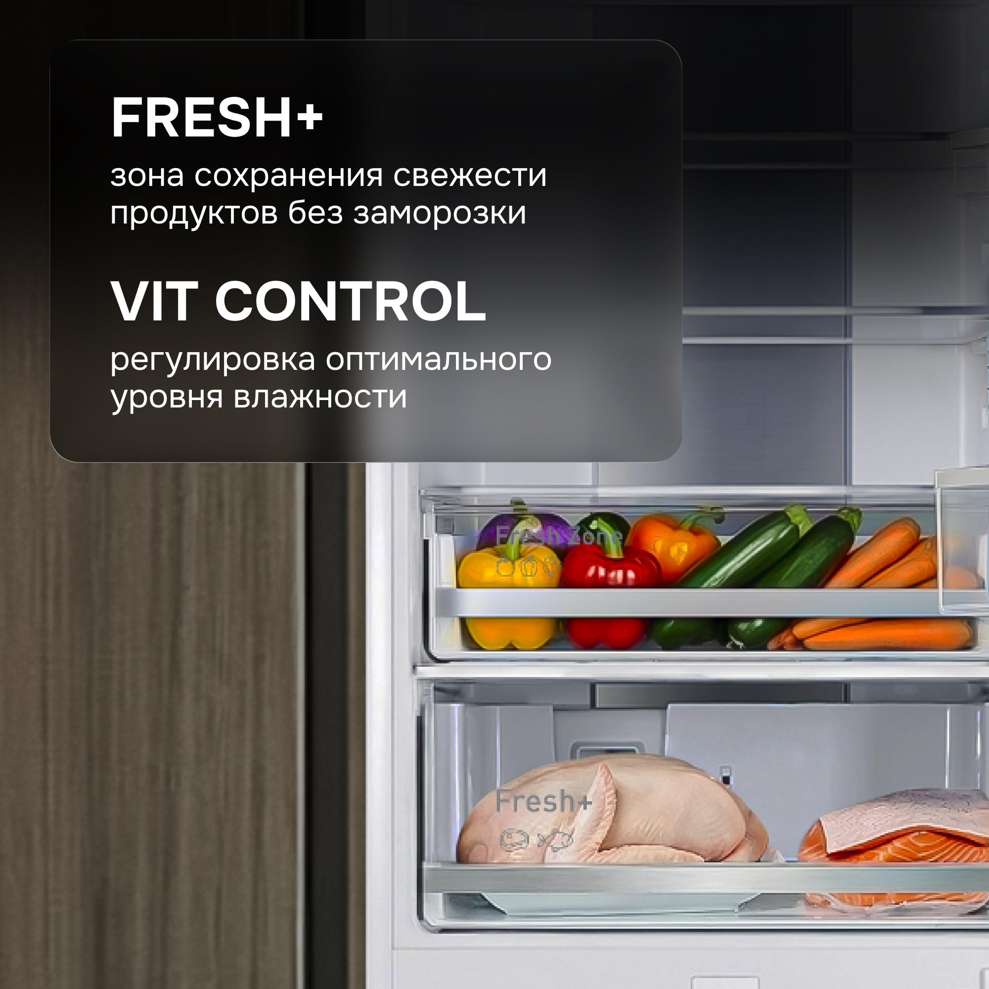 - Зона свежести «VitControl» в холодильной камере