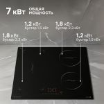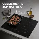• Четыре зоны нагрева с мощностью 1200/1500 Вт, 1800/2300 Вт, 1200/1500 Вт и 1800/2300 Вт, а также FLEX-зона (зона расширения) с мощностью 3000/3600 Вт позволяют быстро и комфортно приготовить любимые блюда.