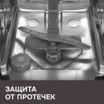 Система защиты от перелива надежно защищает вас и ваших соседей от подтопления. В случае протечки или нарушения целостности системы срабатывает поплавковый выключатель в поддоне, и посудомоечная машина автоматически отключается.