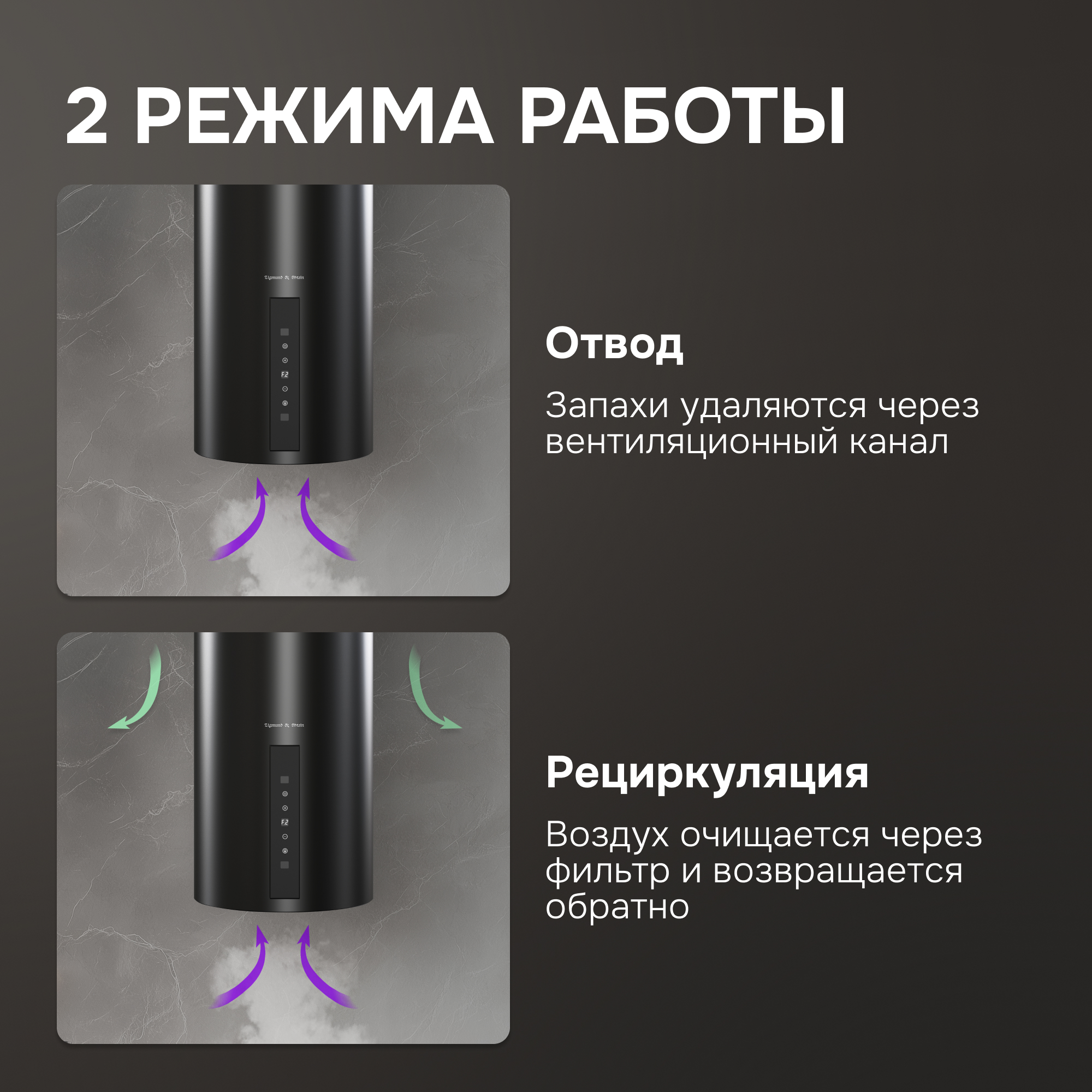 | Режим работы | отвод/рециркуляция |