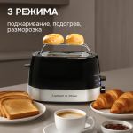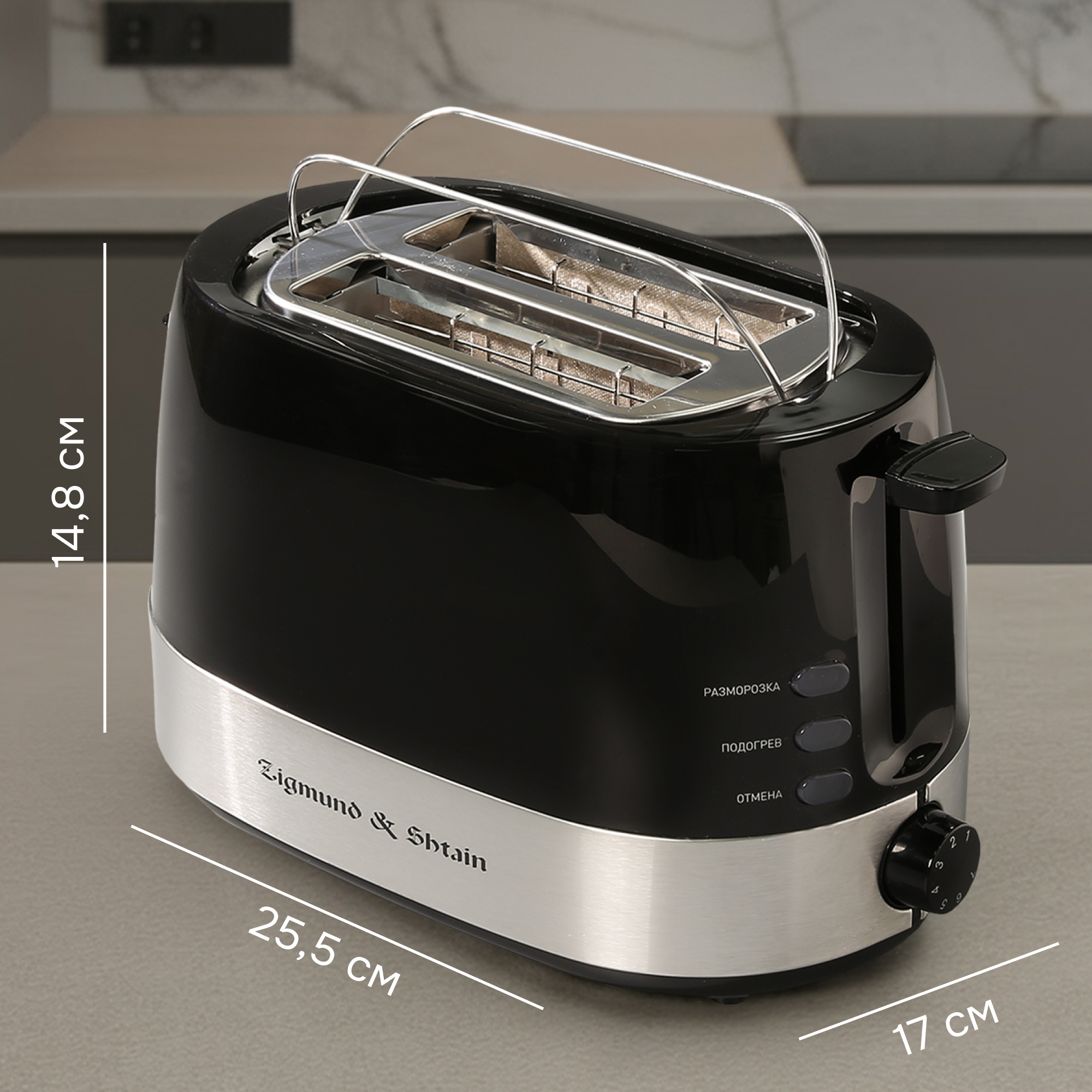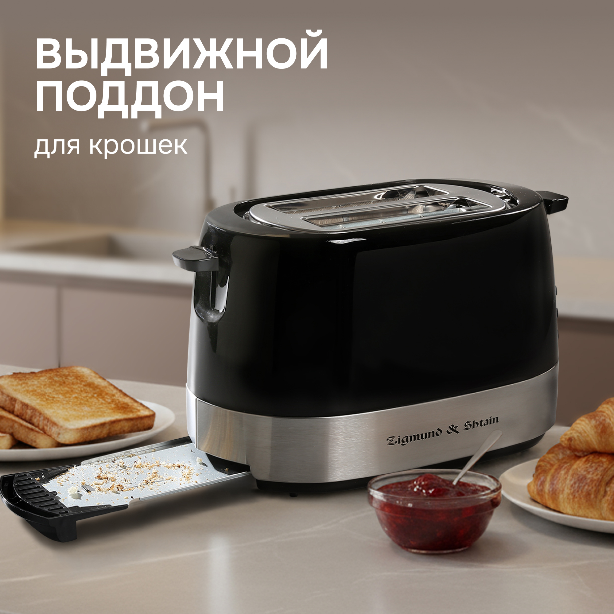 Модель Zigmund & Shtain ST-80B отлично справляется с быстрым приготовлением тостов. Тостер автоматически центрирует содержимое, чтобы куски хлеба прожаривались равномерно. Функция подъема позволяет аккуратно приподнимать их, чтобы пользователь не обжегся. С помощью кнопки отмены можно остановить прожарку в любое время.