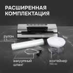 Комплектациявакуумный упаковщик, рулон для вакуумной упаковки, контейнер для вакуумирования, вакуумный шланг, гарантийный талон, инструкция
