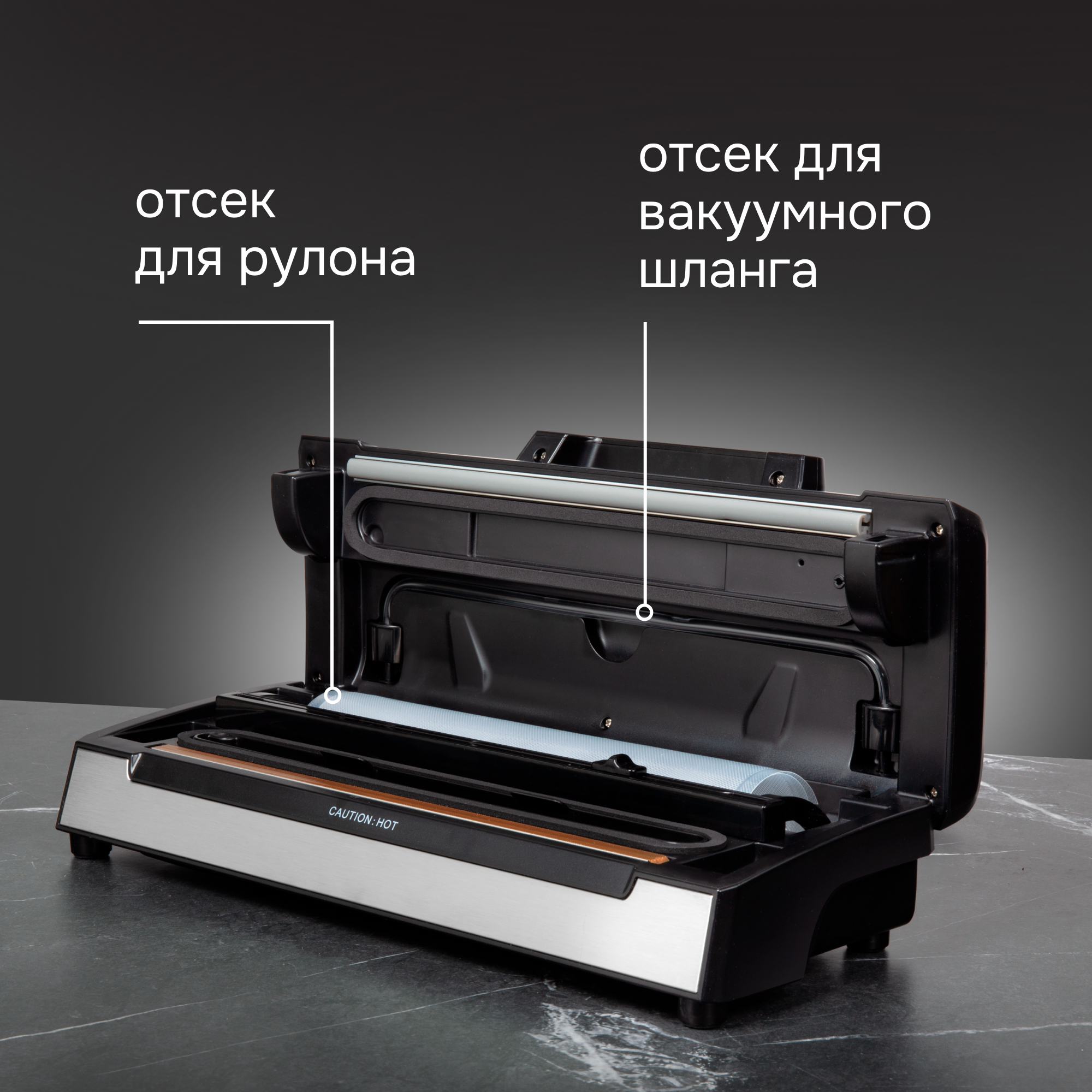 • Нож для резки пакетов и контейнер для вакуумирования.