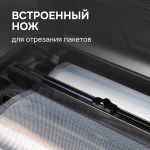 Конструктивные особенностивстроенный нож для отрезания пакетов, место для хранения сетевого шнура, отсек для рулона внутри корпуса