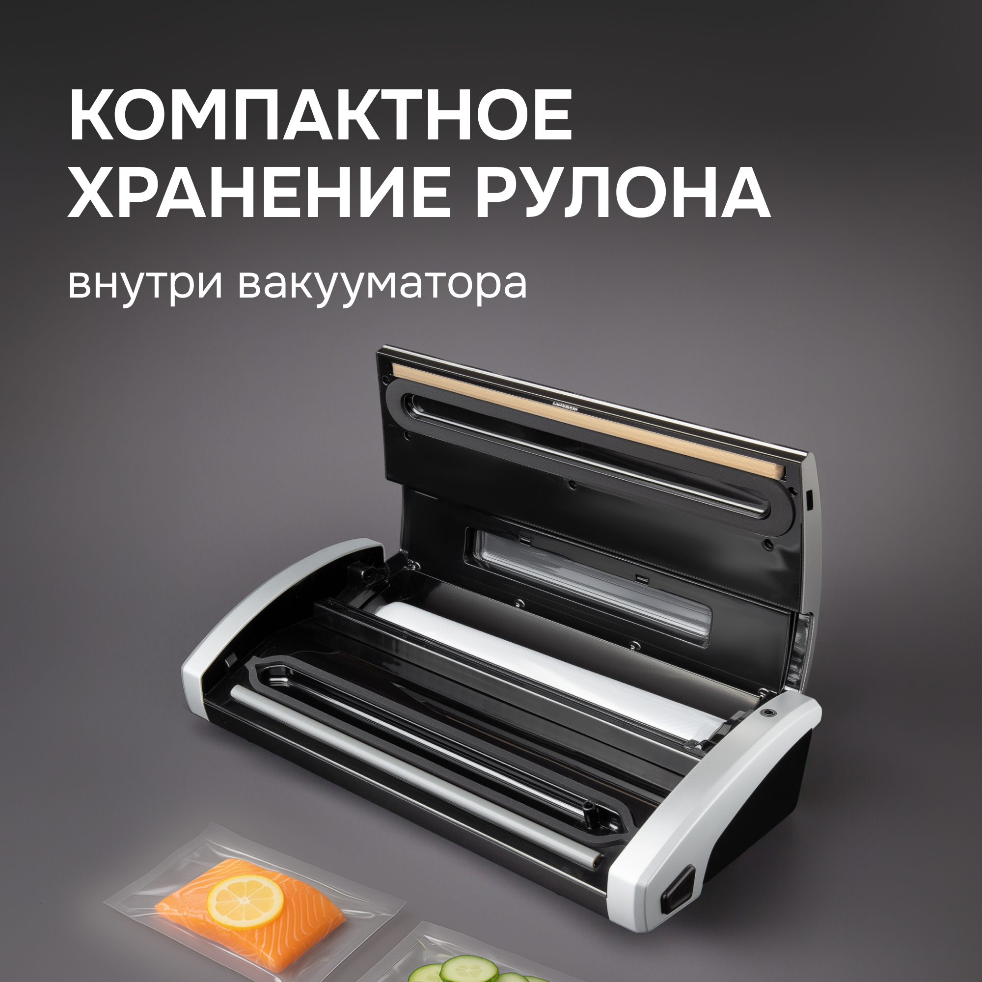 VS-505 — это вакуумный упаковщик от Zigmund & Shtain, который поможет надолго сохранить продукты свежими. Он подходит для работы с рулонной пленкой, пакетами и контейнерами. Эффективно удаляет воздух из упаковки с сухими и влажными продуктами.