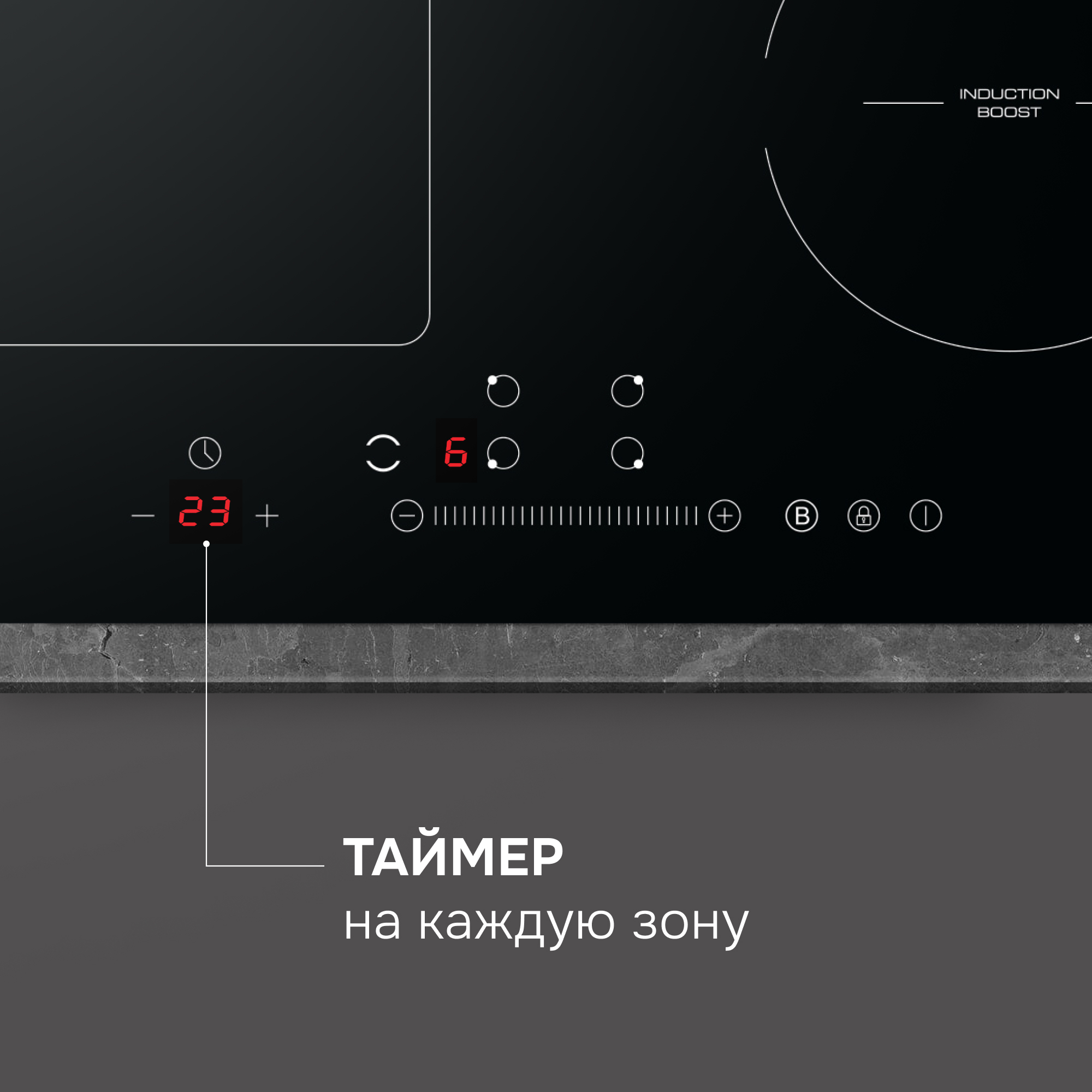 · Наличие таймера с отключением до 99 минут на каждой конфорке проще контролировать процесс готовки, например, при варке макарон;