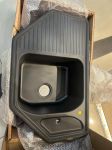 Первое, что бросается в глаза – это нестандартная, современная эргономичная форма. Модель ECKIG 800 представляет собой изумительную альтернативу прямолинейной двухсекционной мойке. Выполненная из натурального гранитного камня, эта симметричная угловая мойка, имеет отличные показатели качества и высокой функциональности. Такое устройство предназначено для встраивания в угловую секцию столешницы, что позволяет использовать пространство с максимальной рациональностью. Конструкция имеет две чаши разных размеров: основная, прямоугольной формы, с закругленными углами, расположена посередине, а вторая маленькая неправильной формы находится сбоку от нее. На противоположной стороне размещено удобное треугольное крыло, на котором можно сушить вымытую посуду. Что примечательно, углублённое закругление слева в основной рабочей полости, позволяет разместить в чаше посуду даже с длинными ручками, не наклоняя ее и не уменьшая полезный объём мойки.