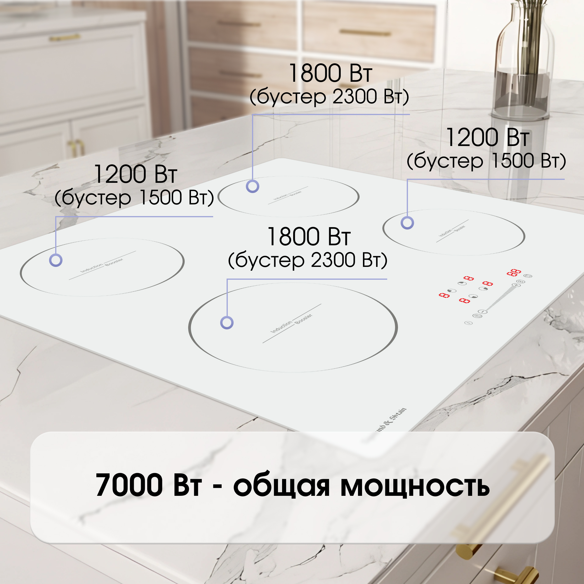 Элегантность и функциональность в каждой детали. Индукционная варочная панель с стеклокерамическим покрытием станет настоящим украшением вашей кухни, сочетая в себе передовые технологии и стильный дизайн.