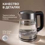 Боросиликатное стекло чайника KE-926 отличается не только термостойкостью при работе с высокими температурами, но и безопасностью, что подтверждается отсутствием в составе BPA.