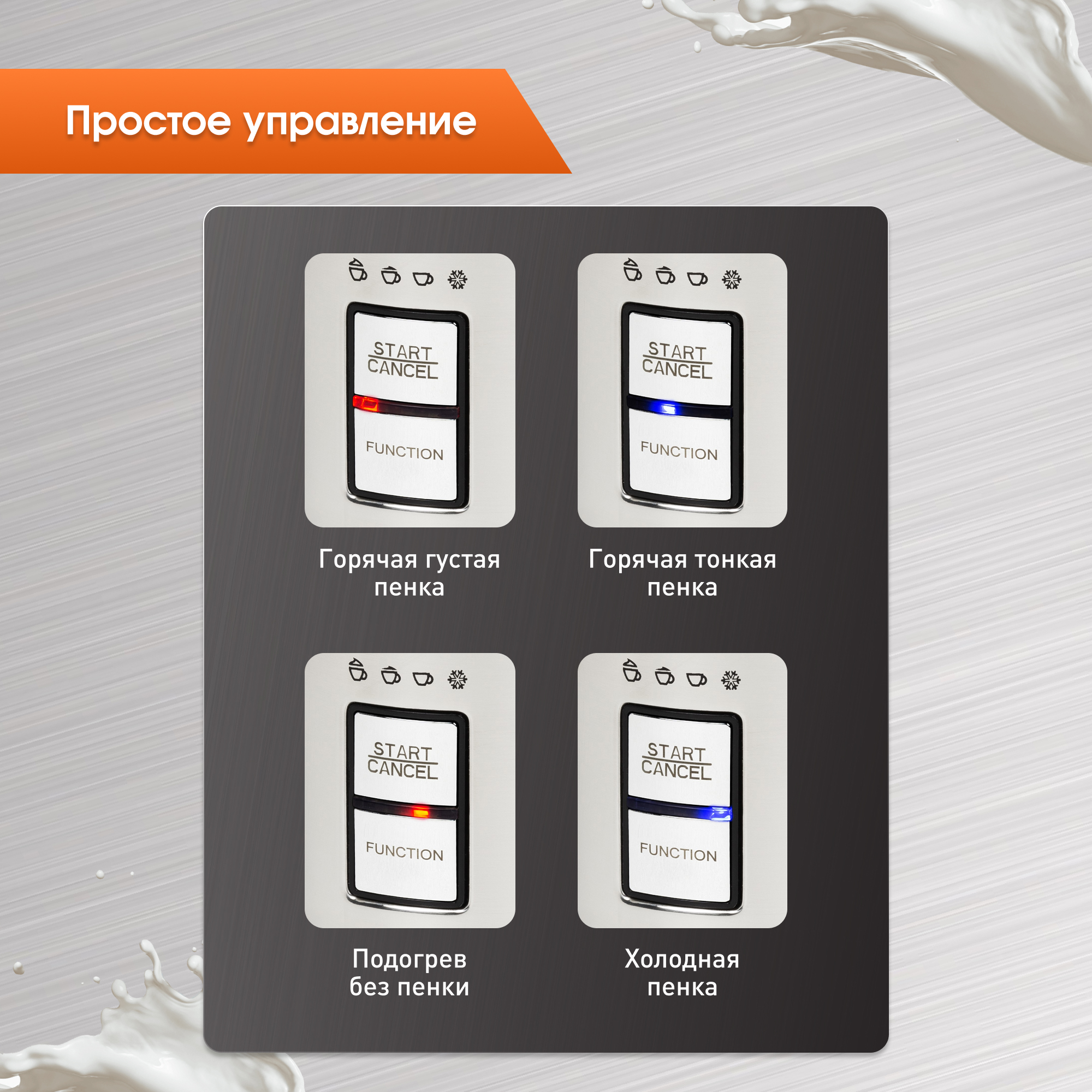 • Выбор режима – горячая густая пенка/горячая тонкая пенка/подогрев без пенки/холодная пенка