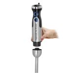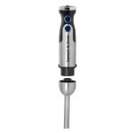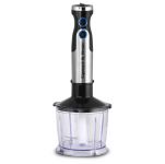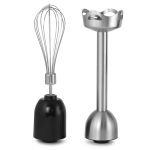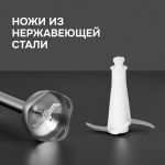Комплектация | блок электродвигателя, насадка-блендер, насадка-венчик, держатель насадки-венчика, нож-измельчитель, чаша измельчителя, стакан для смешивания, инструкция, гарантийный талон |