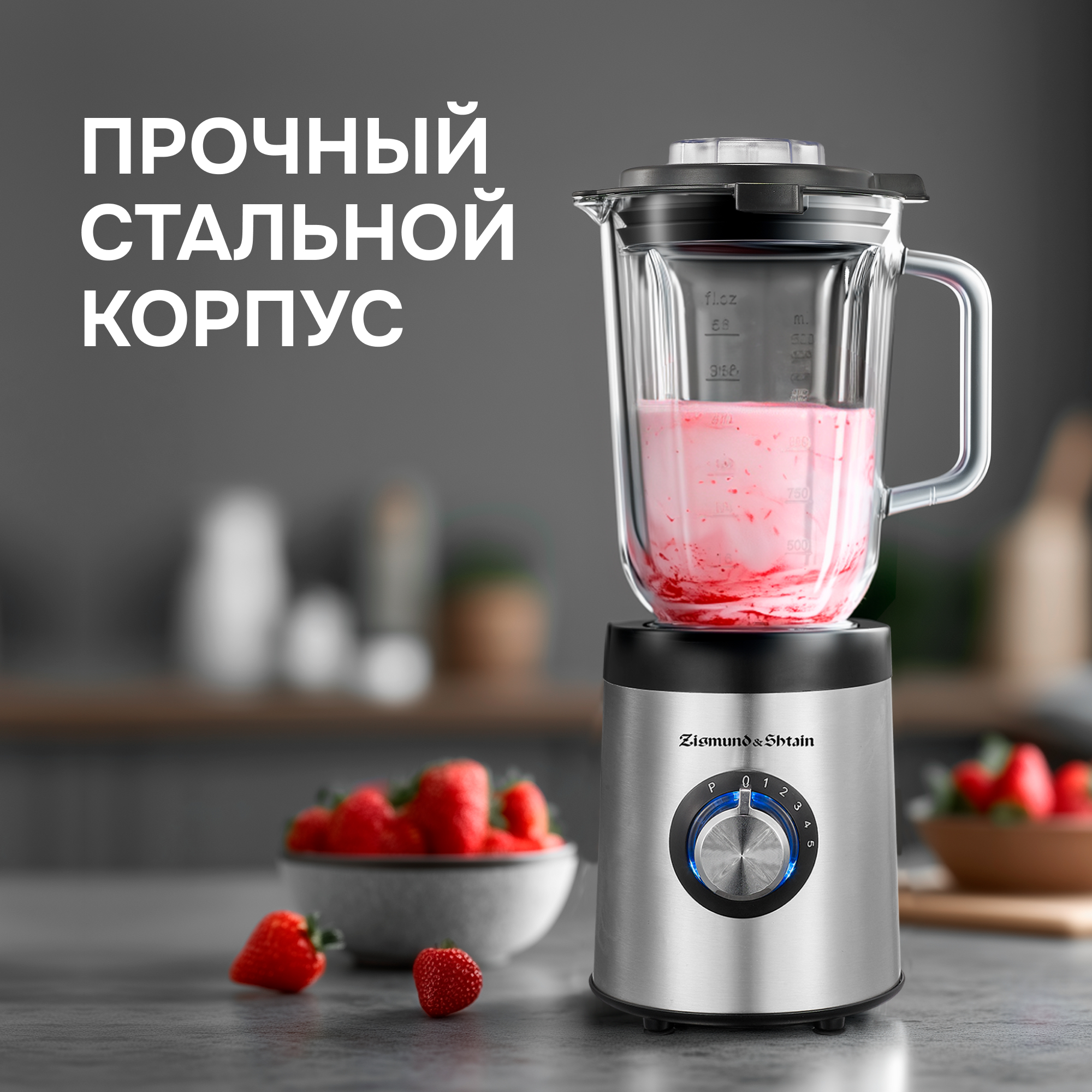 Настольный блендер BS-481 D от компании Zigmund&Shtain – это многофункциональный кухонный прибор, призванный облегчить домашний труд хозяйки. Он объединяет в себе функции таких приборов как блендер, измельчитель и миксер. С помощью блендера BS-481 D можно и быстро и качественно измельчить, взбить, смешать любые продукты, приготовить молочные и фруктовые коктейли, смузи, различные десерты, соусы, супы-пюре и многое другое. Очень полезным будет блендер для молодых мам. Он позволит приготовить разнообразные блюда детского питания, за считанные секунды доведет их до нежнейшего пюреобразного состояния.