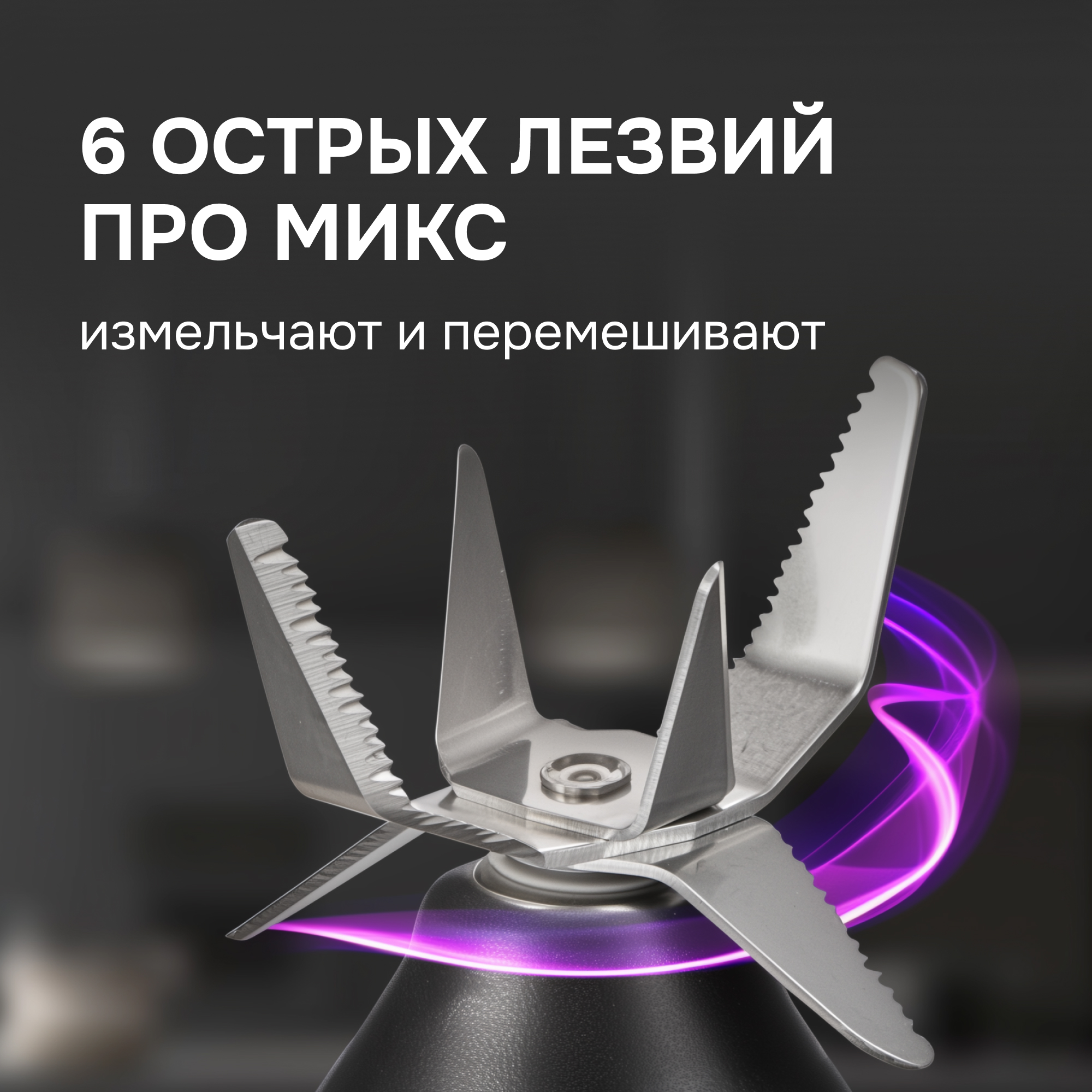 Оригинальная конструкция ножей ПРОмикс+ максимально повышает качество и скорость измельчения, обеспечивает дополнительную циркуляцию и постоянное перемешивание внутри чаши – это позволяет добиться идеальной однородной консистенции напитков и блюд.