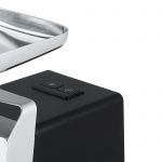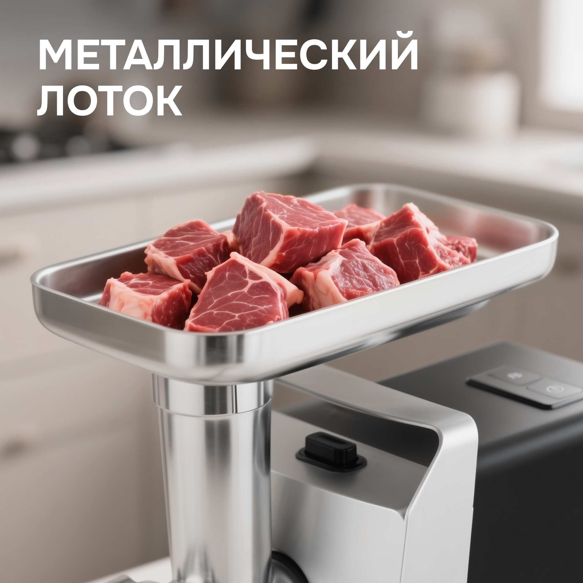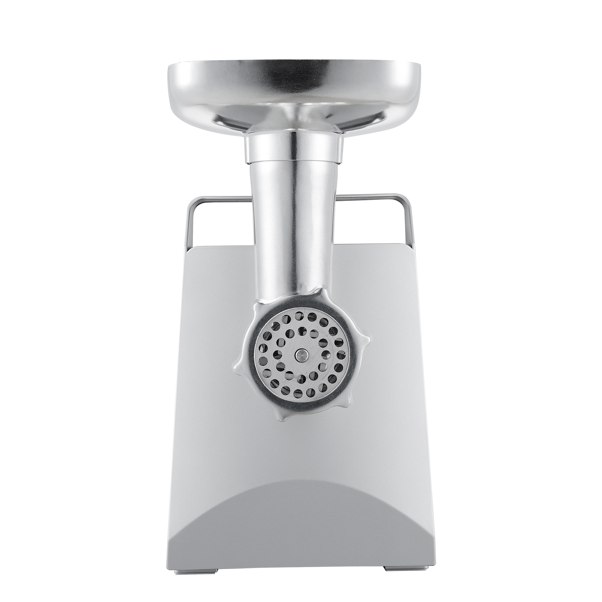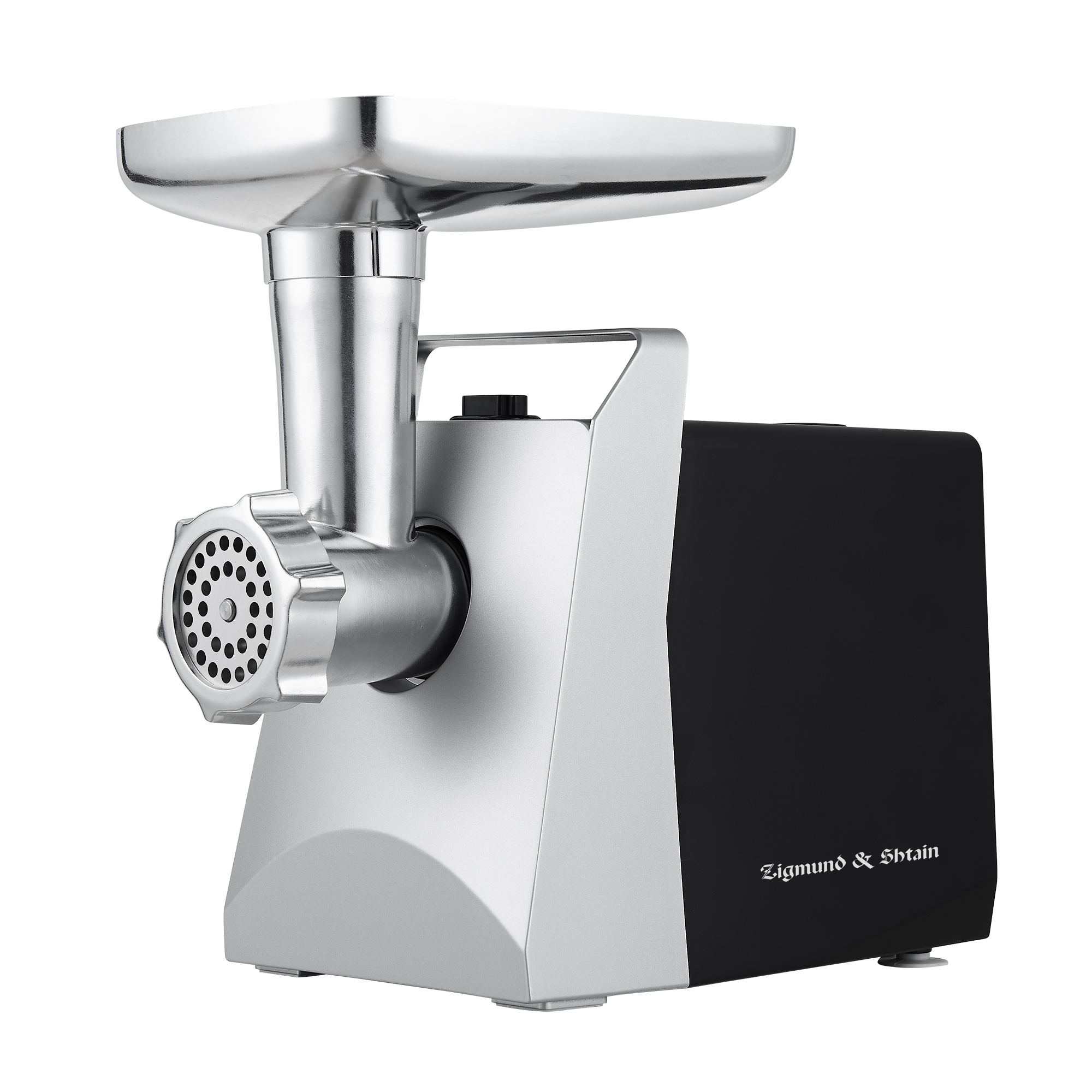Корпус мясорубки выполнен в современном дизайне, а лоток для продуктов изготовлен для металла. В комплектацию входят 3 дисковые насадки из нержавеющей стали, а также насадки для приготовления колбас и кеббе.