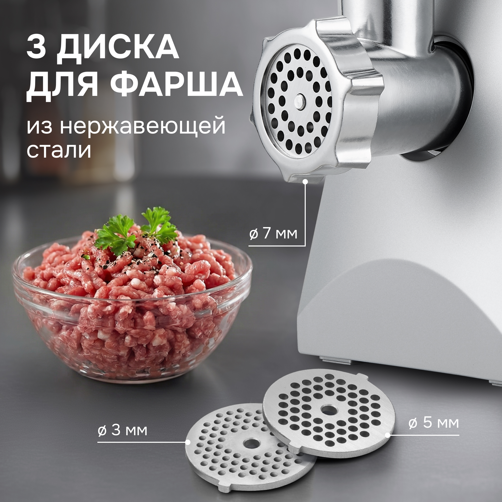 - 3 дисковые решетки - 3/5/7 мм