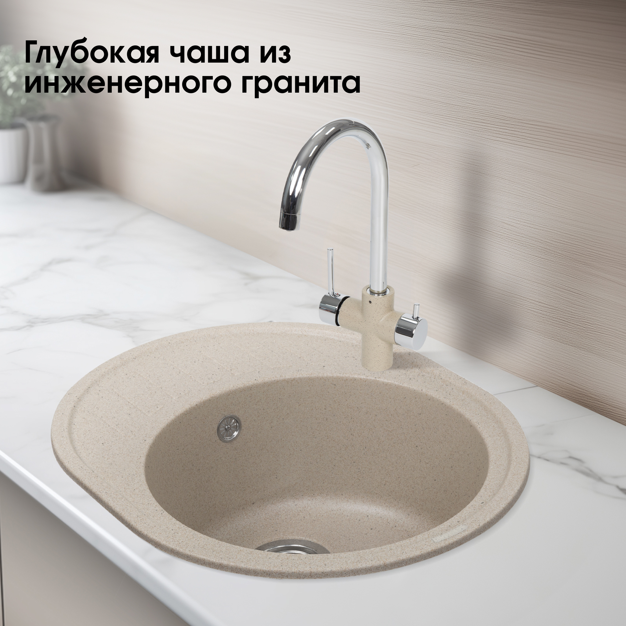 Кухонная мойка Ecoshtein Ecoshtein KREIS OV 620 Песочный — практичное и презентабельное решение для создания идеального кухонного пространства.