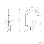 Однорычажный смеситель с керамическим картриджем, аэратором и корпусом из латуни, покрытым порошковой краской. Имеет компактные размеры 305*240 мм и подходит для различных типов раковин. Управление смесителем осуществляется с помощью рычага, подключение к системе водоснабжения стандартное.
