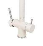 Одноизливный – фильтрованная и водопроводная вода подаются через один аэратор. Это позволяет не нарушая общего вида смесителя, получать очищенную и водопроводную воду через одно устройство.