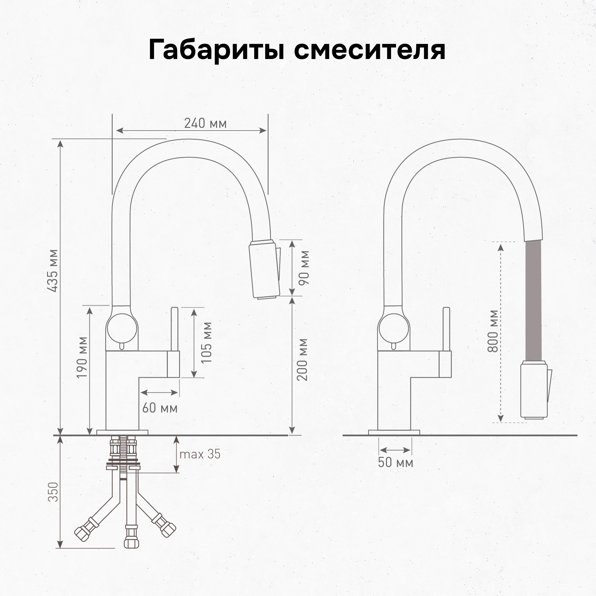 Тип смесителяоднозахватный с выдвижным шлангом-лейкой