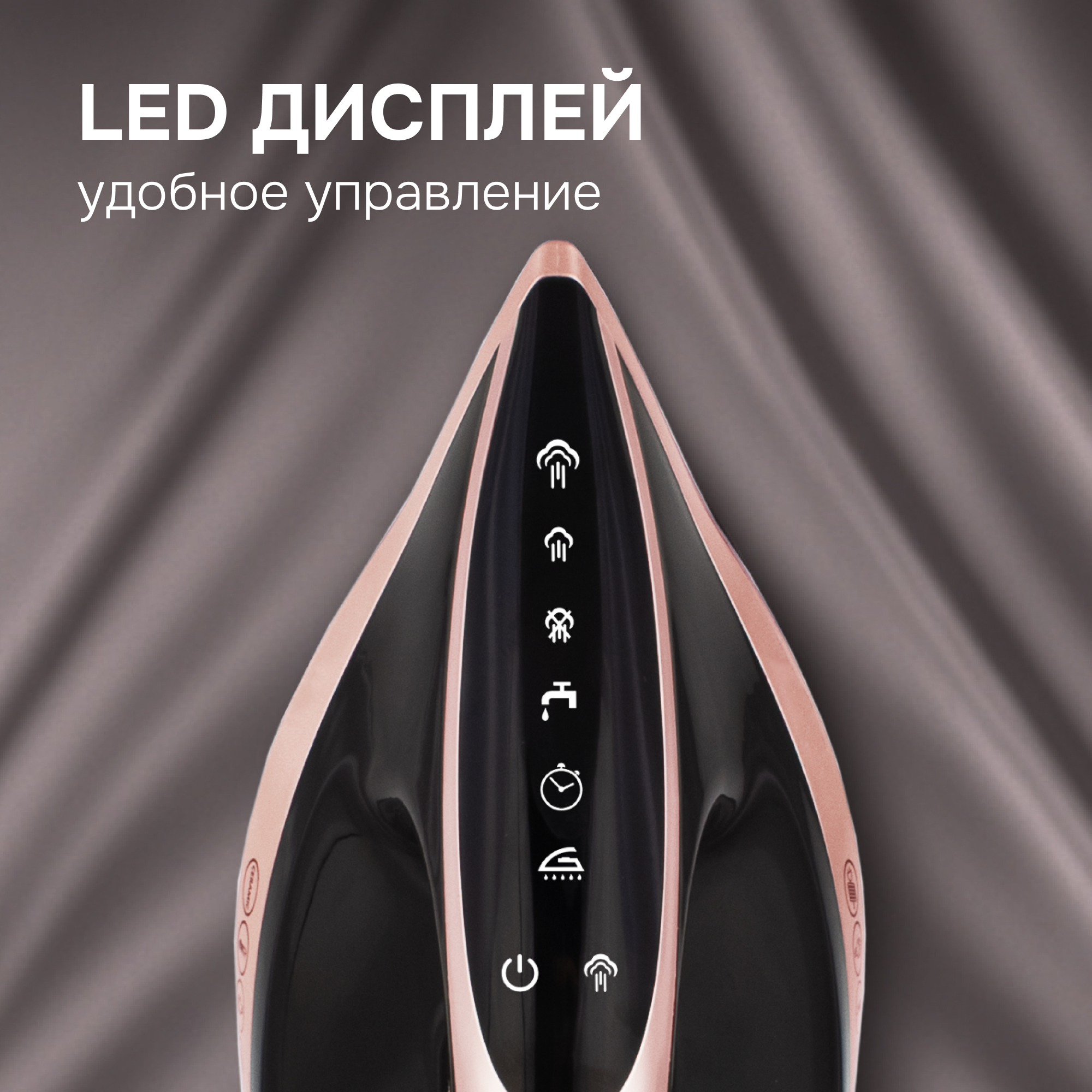 LED дисплей поможет вам выбрать в каком режиме вы хотите работать в данный момент. Уже через 40 секунд после его включения можно будет работать с паровой станцией. Дополнительная и немаловажная функция – автоотключение, позволяет оставить утюг в горизонтальном положении и через 30 секунд он отключится, если же вы оставили утюг включенным в вертикальном положении, то он автоматически выключится через 8 минут.