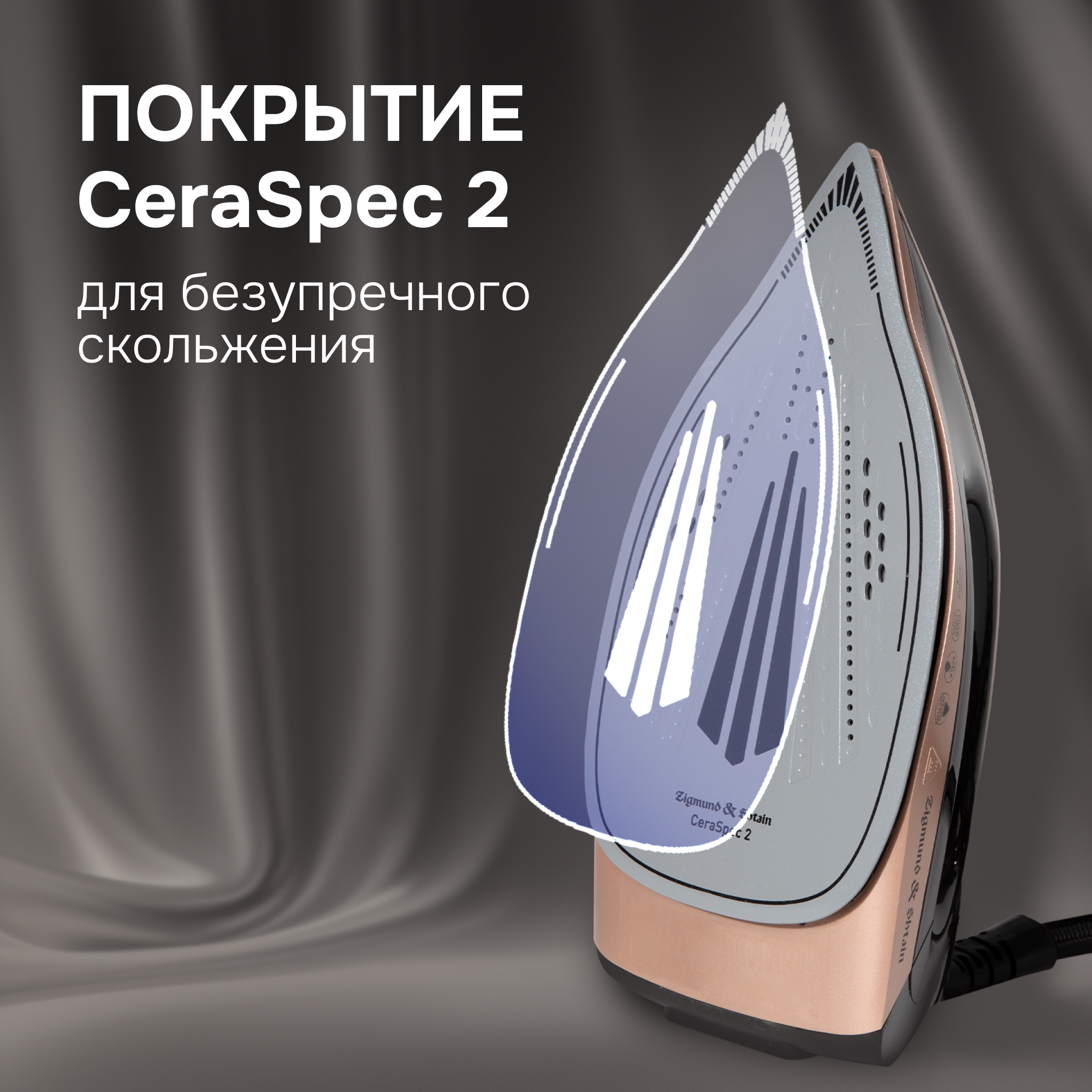 Инновационное двухслойное керамическое покрытие нового поколения CeraSpec2, обеспечивающее сверхлегкое скольжение по ткани CeraSpec2– это двойное керамическое покрытие, которое позволяет без препятствий работать с тканью в разных направлениях, без образований новых складок или её вытягивания. Благодаря своей многослойности подошва устойчива к сколам и царапинам, что многократно продлевает срок службы утюга. Зауженный носик поможет вам без проблем прогладить всё, даже если это труднодоступные места.