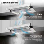 Вниманию любителей кулинарии, ценителей удобства на кухне и просто хозяек представляется встраиваемая кухонная вытяжка Zigmund & Shtain K 005.41 S. Техника имеет встраиваемый тип установки, что позволит сэкономить пространство над плитой, а также легко вписаться в любой интерьер. Ширина устройства – 45 см, отличное решение для малогабаритных кухонь, где ценится каждый квадратный сантиметр. K 005.41 S подходит для работы как в режиме рециркуляции, так и отвода. Жировой фильтр в комплекте позаботится о долгой работе двигателя и способствует очищению воздуха. При необходимости можно отдельно установить угольный фильтр для избавления от запахов и различных примесей. Антивозвратный клапан с функцией не позволит грязному воздуху вернуться обратно.
