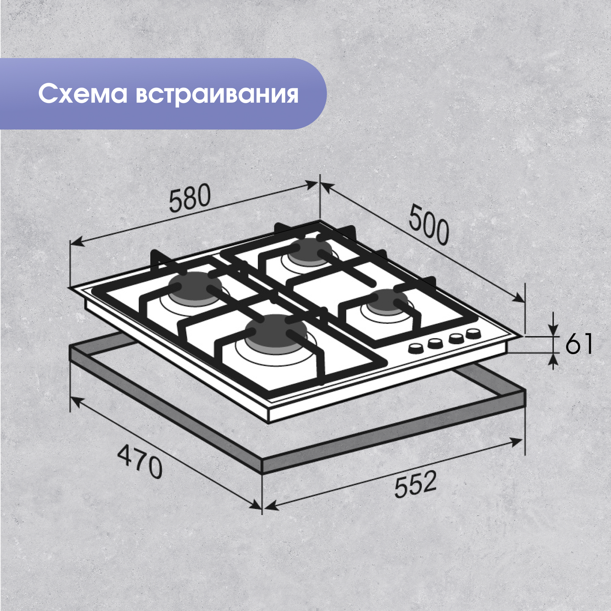 | Ниша для встраивания (ШхГ), мм | 552*470 |