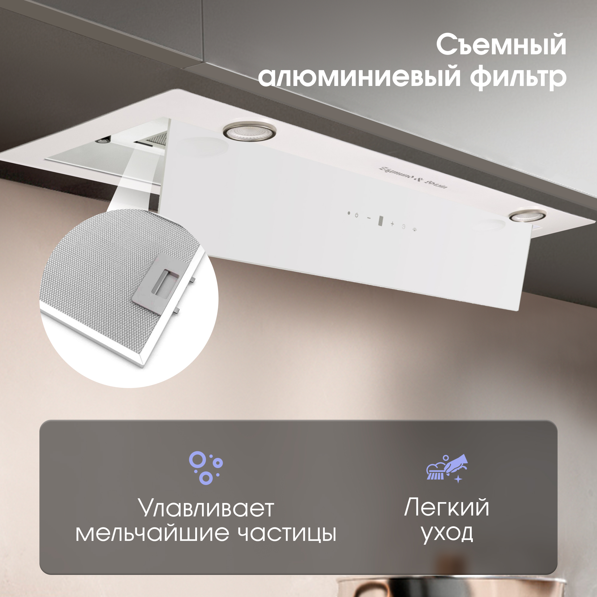 Во время готовки неизбежно появляются запахи, дым, пар, жиры, и все это оседает на окружающих поверхностях и предметах. Вытяжка Zigmund & Shtain K 011.7 W компактная, но мощная, легко справится с их устранением и решит проблему. С таким надежным помощником вы сможете позволить себе любые кулинарные эксперименты без опасений за сохранность отделки и мебели на кухне.