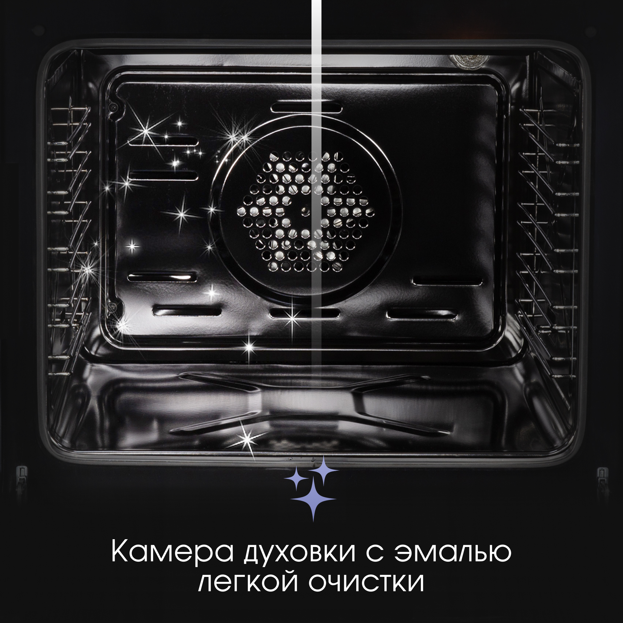 - Внутреннее покрытие – это эмаль легкой очистки – не имеет пор, в которых могла бы застревать еда или жировые брызги, поэтому уход за духовкой будет простым и легким;