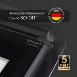 На духовой шкаф распространяется гарантия по системе 3+2, где первые три года товар находится на полном гарантийном обслуживании, а затем два года есть возможность получить запчасти бесплатно.