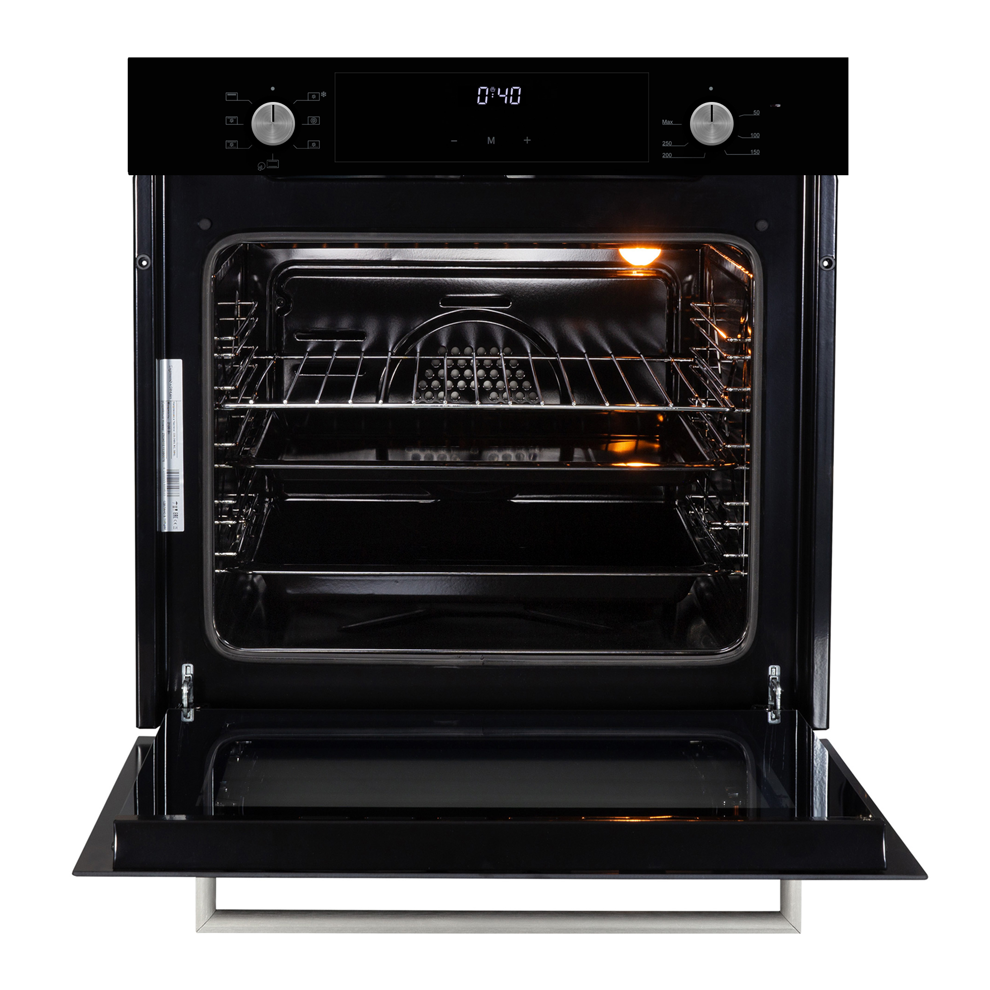 - Электронный таймер с отключением позаботится о том, чтобы блюдо не подгорело, а работа духовке не осталась без контроля.