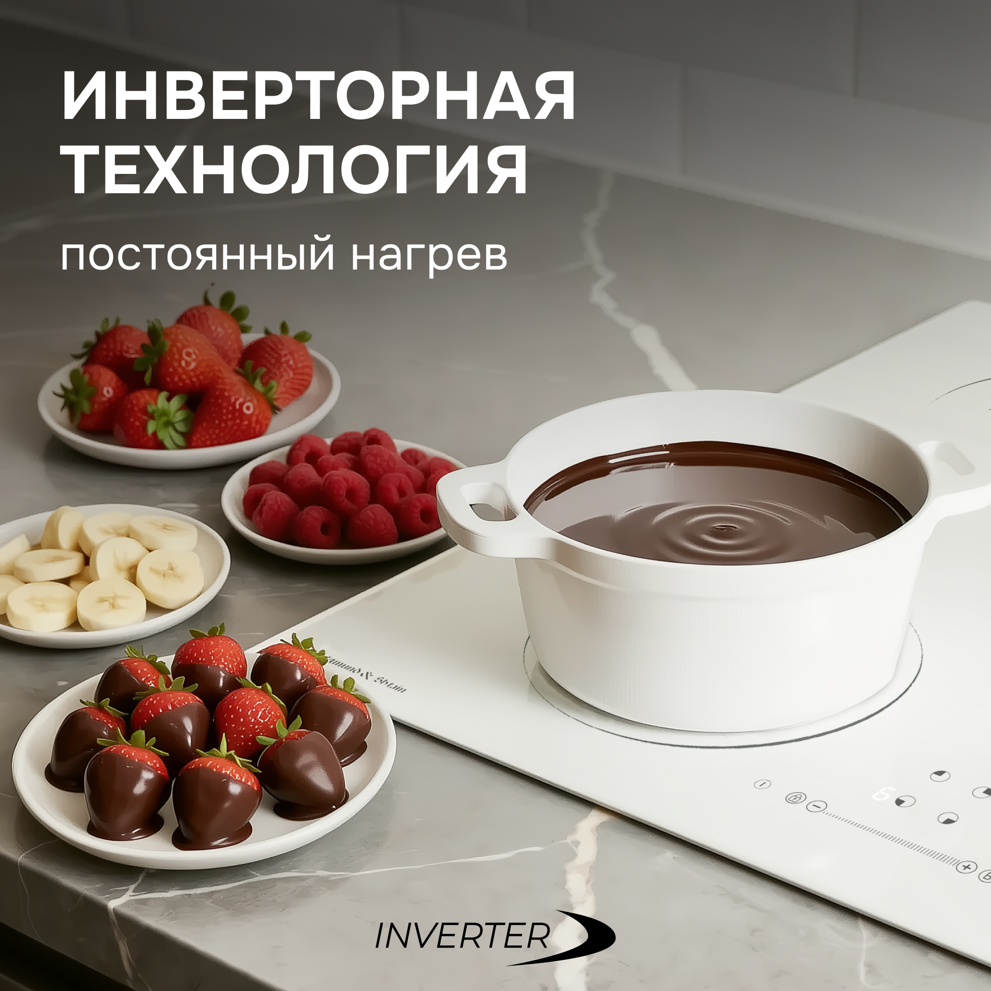 · Индукционный тип нагрева тратит в 3 раза меньше времени на достижение нужной температуры, чем традиционные электрические модели;