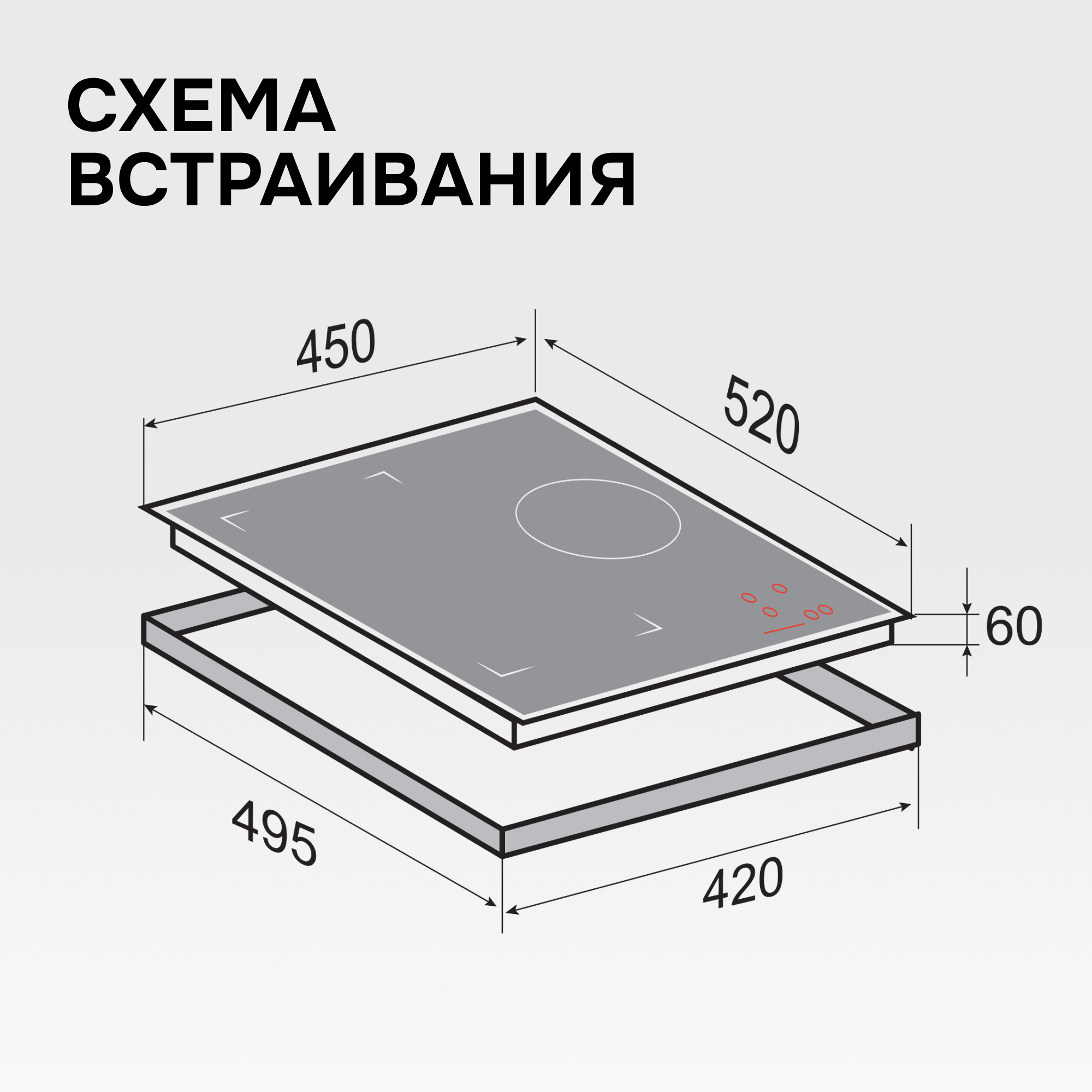 Размеры для встраивания: 420*495 мм