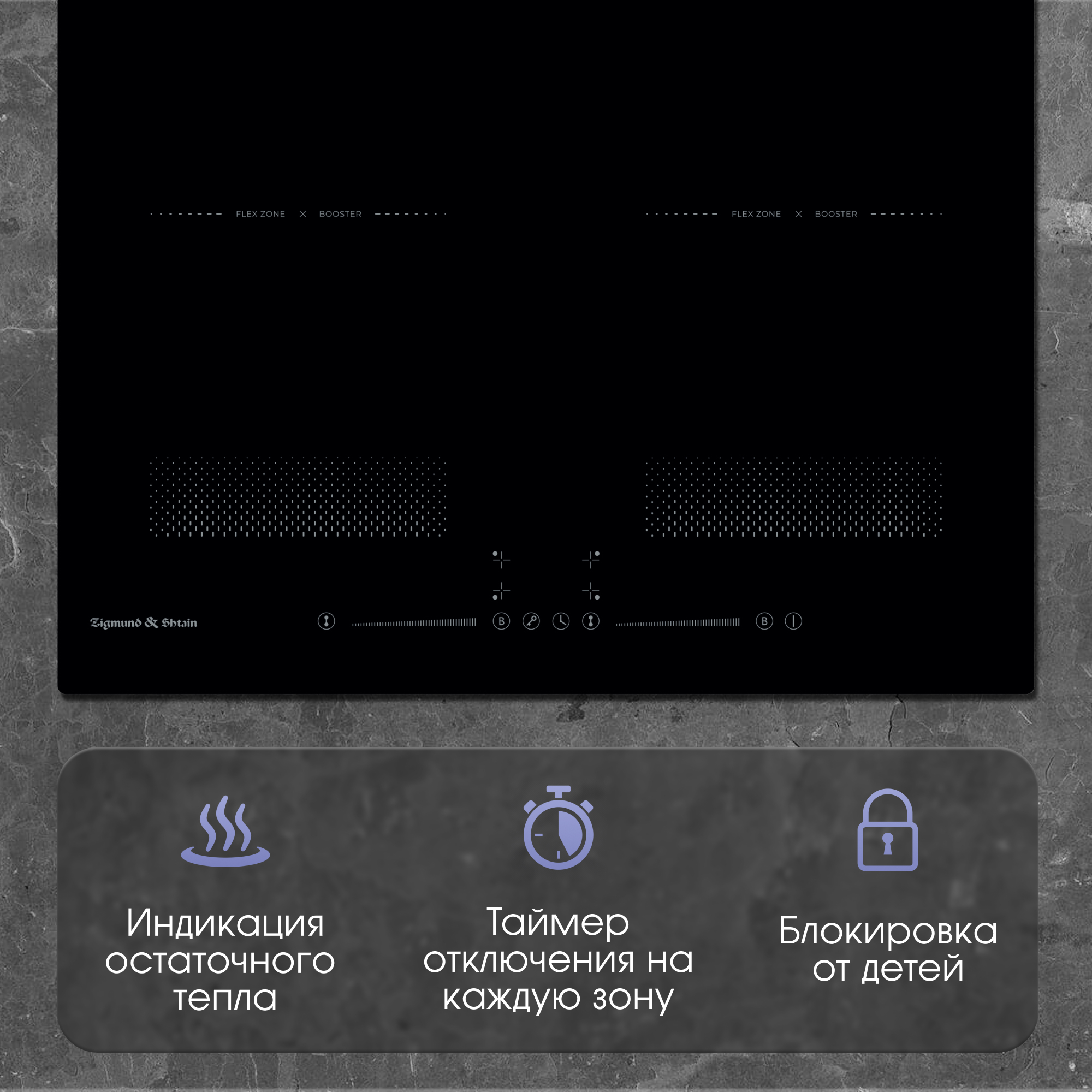 Индукционная стеклокерамическая поверхность Zigmund & Shtain CI 62.6 B легко впишется в кухню любого дизайна. Сочетание стиля, функциональности и европейского качества сделают ее вашим незаменимым помощником на кухне. Преимущество технологии индукционного нагрева в том, что конфорки нагревают непосредственно дно посуды, оставляя рабочую поверхность плиты холодной, а благодаря автоматическому определению диаметра посуды, площадь нагрева адаптируется под размер дна, что существенно экономит электроэнергию. При этом нужная температура достигается в 3 раза быстрее.