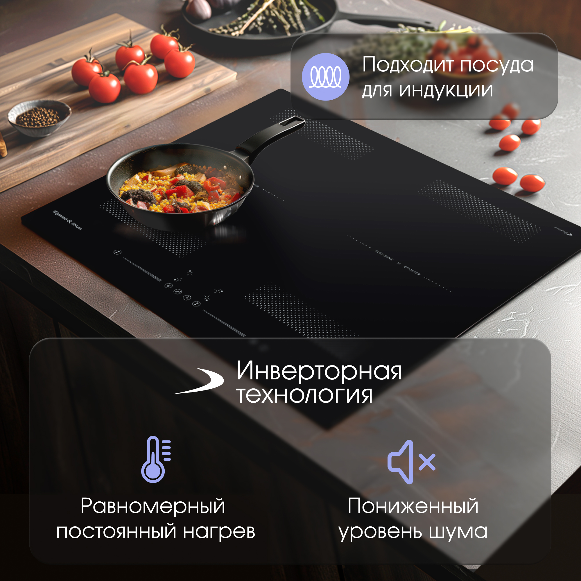 • Технология ИНВЕРТЕР индукционной панели Zigmund & Shtain CI 62.6 B позволяет избежать пригорания и перегрева блюд за счет поддержания равномерного постоянного нагрева даже на самых низких мощностях. Поддержание постоянной температуры важно как во время жарки блинов, так и для растапливания шоколада, сливочного масла, а также для приготовления фондю и соусов. Кроме того, инверторный нагрев снижает уровень шума при включении индукции и во время всего процесса приготовления.
