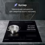 • Функция «Бустер», имеющаяся на каждой конфорке, позволяет кратковременно увеличить мощность нагрева до максимума, чтобы в 2-3 раза сократить время доведения воды, молока или супа до кипения.