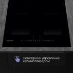 • Сенсорная панель с мультислайдером делает управление интуитивно понятным. Чтобы включить прибор и выставить нужную мощность нагрева, не нужны физические усилия. Достаточно коснуться кнопки включения и индикатора конфорки, а затем провести пальцем по слайдеру левой или правой зоны, пока на LED-дисплее не появится нужная мощность.