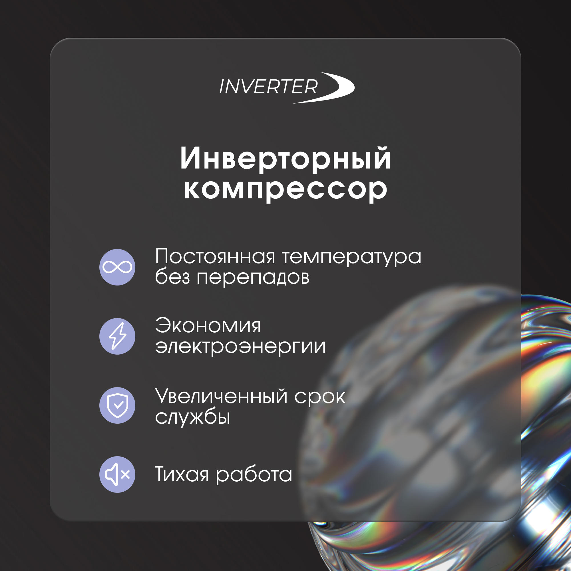 • Инверторный компрессор: Наслаждайтесь тишиной и долговечностью благодаря инверторному компрессору, который обеспечивает плавную и эффективную работу холодильника BR 22 X с минимальным уровнем шума (38 дБ) и энергопотребления (0,576 кВт в сутки).