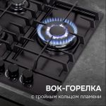 • Для любителей готовить на высоком огне предусмотрена ВОК-горелка с тройным кольцом пламени, которая идеально подходит для быстрого приготовления блюд в азиатском стиле.