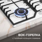 • Для любителей готовить на высоком огне предусмотрена ВОК-горелка с тройным кольцом пламени, которая идеально подходит для быстрого приготовления блюд в азиатском стиле.