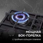 • Для любителей готовить на высоком огне предусмотрена ВОК-горелка с тройным кольцом пламени, которая идеально подходит для быстрого приготовления блюд в азиатском стиле.