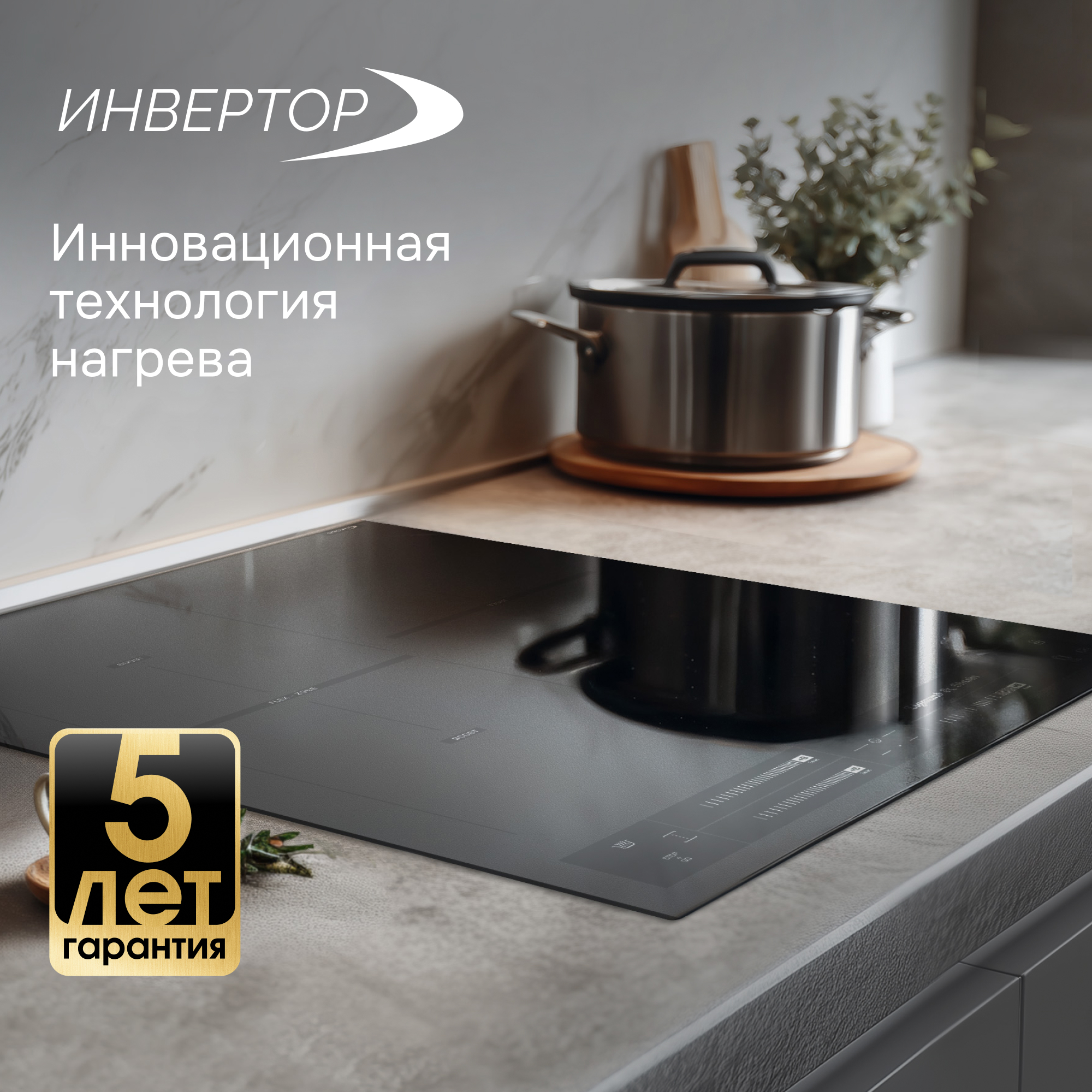 На варочную поверхность действует гарантия по системе «3+2», где первые три года на товар действует полное гарантийное обслуживание, а затем два года есть возможность получить запчасти бесплатно.