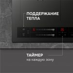 • Таймер отключения до 99 минут на каждую зону нагрева избавляет от необходимости постоянного контроля за процессом приготовления, например, при варке яиц и макарон.